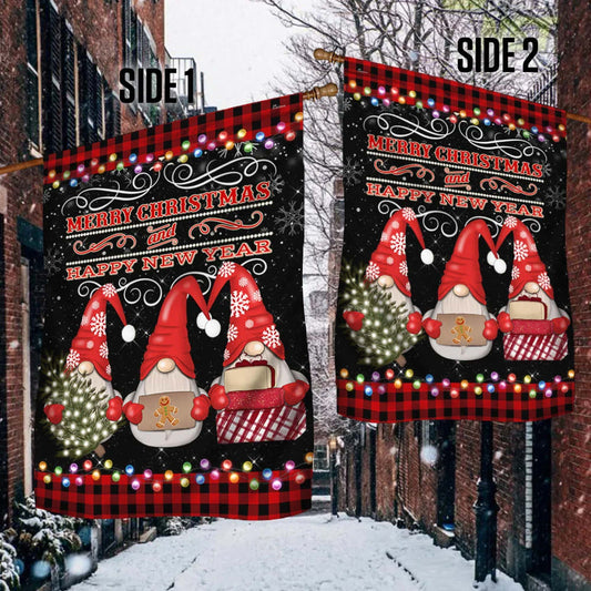 Merry Christmas And Happy New Year Gnome Flag - Christmas Garden Flag - Christmas House Flag - Christmas Outdoor Decoration