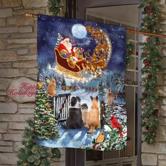 Christmas Flag, Dogs And Cats Watching Santa Claus - Christmas Garden Flag - Christmas House Flag - Christmas Outdoor Decoration