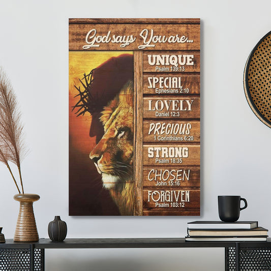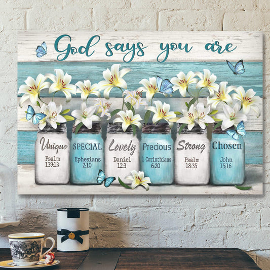 • Jesus Canvas Art - Bible Verse Canvas- God Says You Are Unique Special Lovely Precious Strong Chosen Forgiven Canvas Poster - Ciaocustom