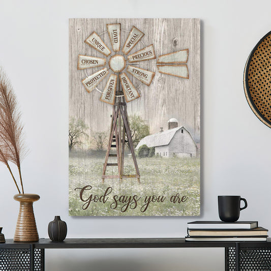 Windmill Pattern - God Says You Are - Bible Verse Canvas - Scripture Canvas Wall Art - Ciaocustom
