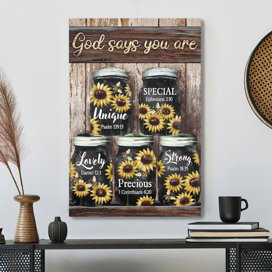 • Sunflower Jar - God Says You Are Canvas Wall Art - Bible Verse Canvas - God Canvas - Scripture Canvas Wall Art - Ciaocustom