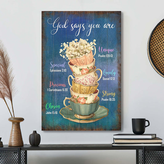 Cups Of Flowers - God Says You Are - Bible Verse Canvas - Scripture Canvas Wall Art - Ciaocustom
