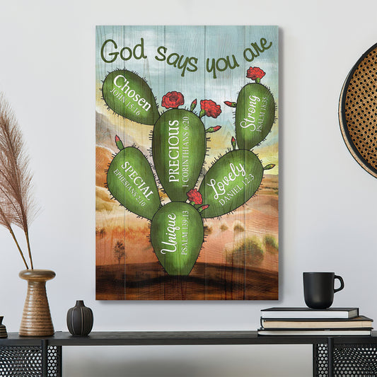 Cactus - God Says You Are Canvas Wall Art - Bible Verse Canvas - Scripture Canvas Wall Art - Ciaocustom