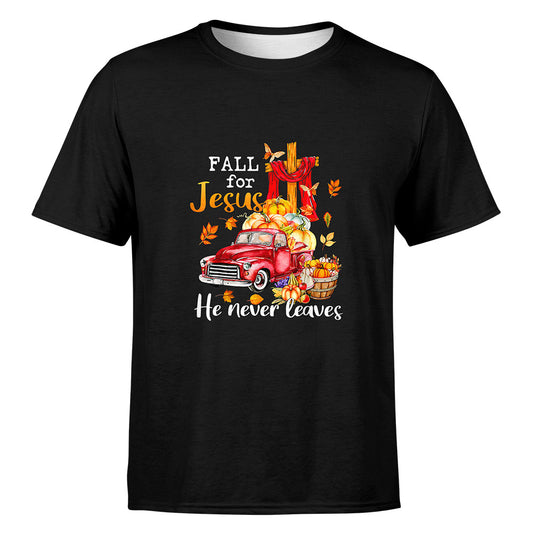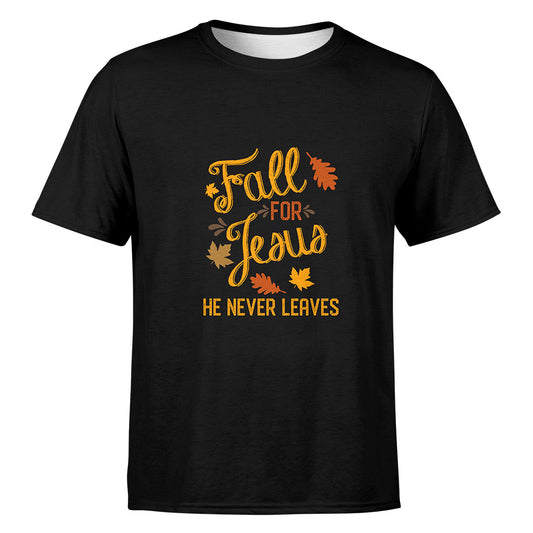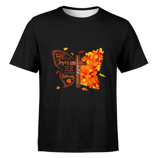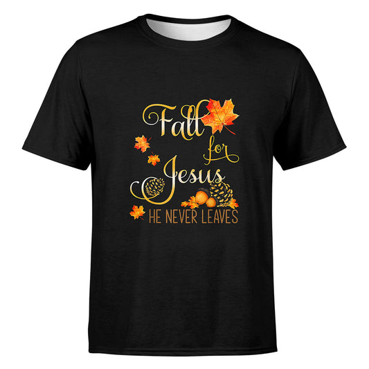 Fall For Jesus He Never Leaves Gift Christian Autumn Lovers T-Shirt