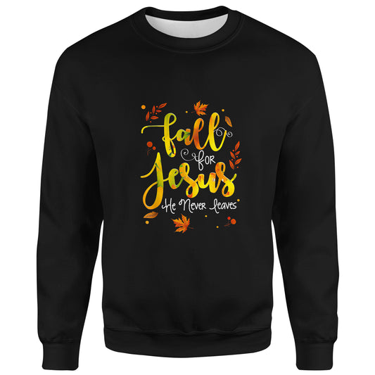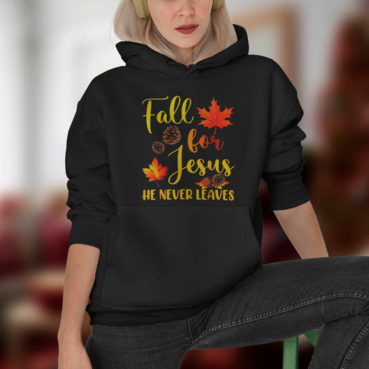 Fall For Jesus He Never Leaves Christian Hoodie T-Shirt