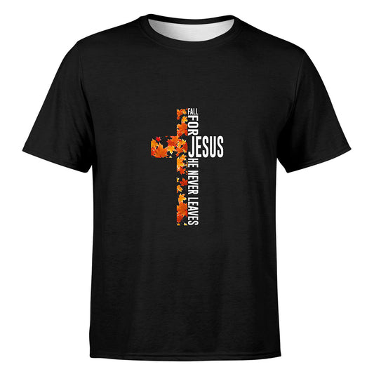 Fall For Jesus He Never Leaves Christian Faith Jesus Cross T-Shirt