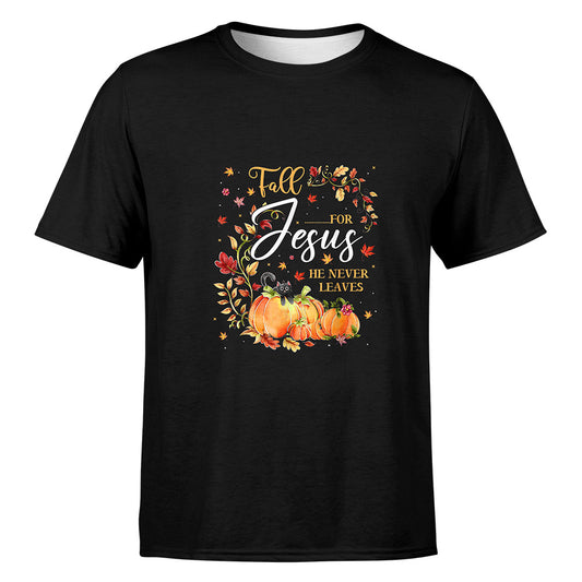 Fall For Jesus He Never Leaves Faith Autumn Thanksgiving T-Shirt