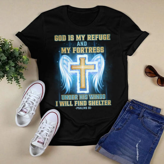 God Is My Refuge And My Fortress Under His Wings I Will Find Shelter T-Shirt, Jesus Sweatshirt Hoodie, Faith T-Shirt