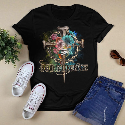 Godfidence, Flower, Three Nails, Crown Of Thorns, God T-Shirt, Faith T-Shirt, Jesus Sweatshirt Hoodie