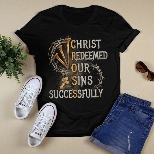Christ Redeemed Our Sins Successfully Cross T-Shirt, Jesus Sweatshirt Hoodie, Faith T-Shirt
