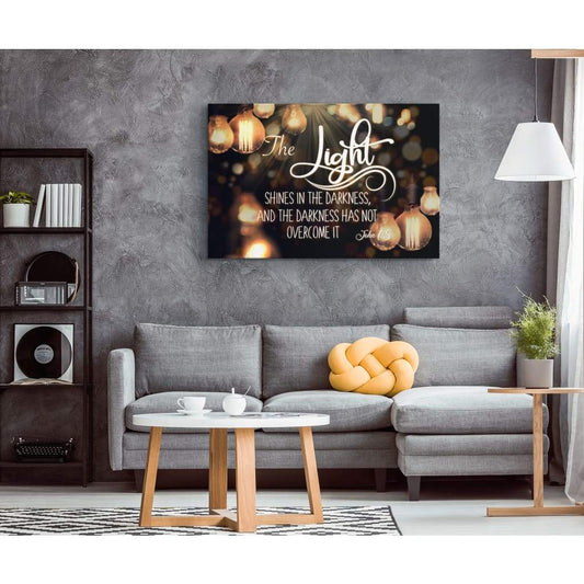 The Light Shines In The Darkness John 15 Bible Verse Wall Art Canvas - Religious Wall Decor