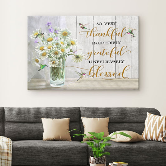 Very Thankful Incredibly Grateful Unbelievably Blessed Canvas Wall Art - Religious Wall Decor
