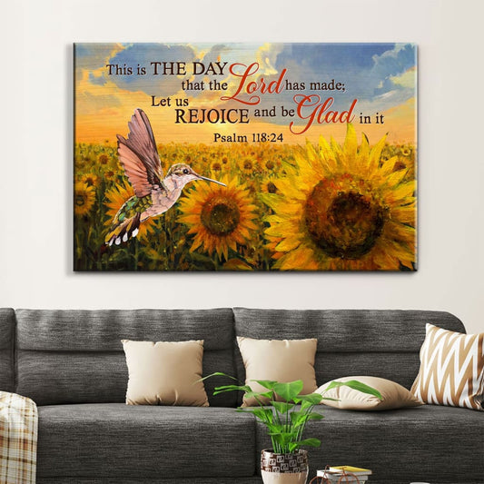 Psalm 11824 This Is The Day That The Lord Has Made Wall Art Canvas, Hummingbird Sunflower Christian Canvas - Religious Wall Decor