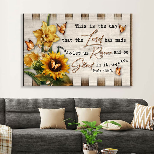 Psalm 11824 This Is The Day That The Lord Has Made Wall Art Canvas, Sunflower Christian Wall Decor - Religious Wall Decor