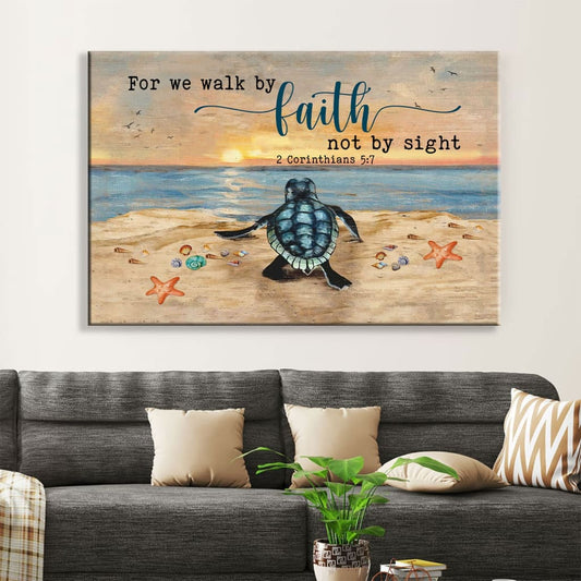 Sea Turtle, For We Walk By Faith Not By Sight Wall Art Canvas Print - Religious Wall Decor