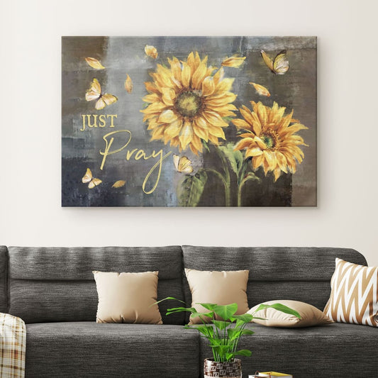Just Pray Sunflower Butterfly Christian Wall Art Canvas - Religious Wall Decor