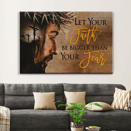 Let Your Faith Be Bigger Than Your Fear Wall Art Canvas, Jesus Face Christian Wall Decor - Religious Wall Decor