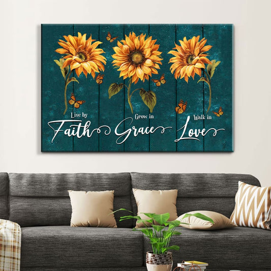 Live By Faith Grow In Grace Walk In Love Wall Art Canvas, Sunflowers Christian Wall Decor - Religious Wall Decor
