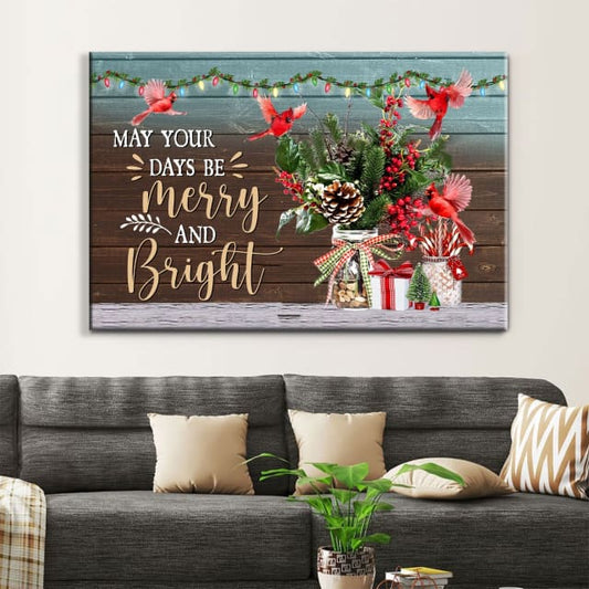 May Your Days Be Merry And Bright, Cardinal Bird, Christian Christmas Wall Art Canvas - Religious Wall Decor