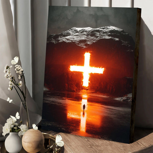 Jesus Fire Cross - Jesus Canvas Pictures - Christian Wall Art