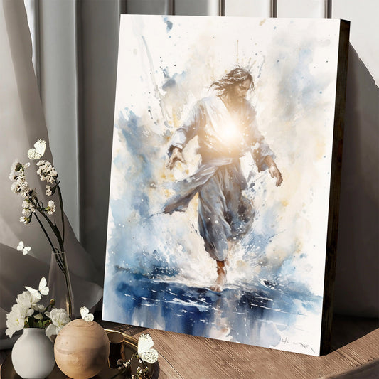 Jesus Walking On Water With A Light Shining From Within Blue - Jesus Canvas Pictures - Christian Wall Art