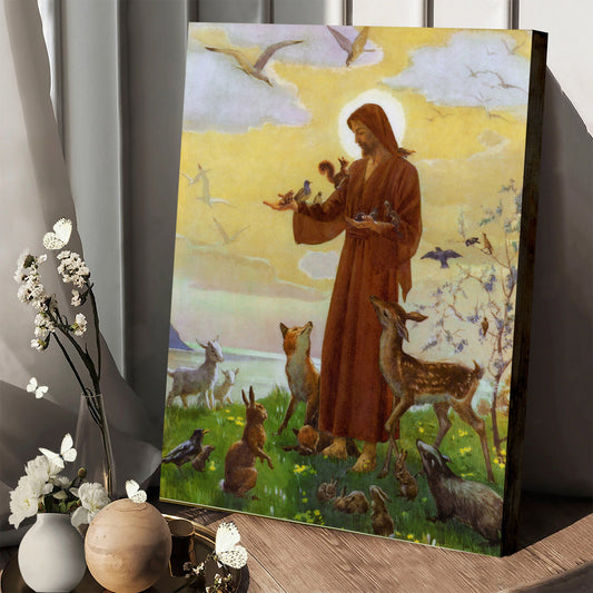 Jesus With Animals Catholic Picture - Jesus Canvas Pictures - Christian Wall Art