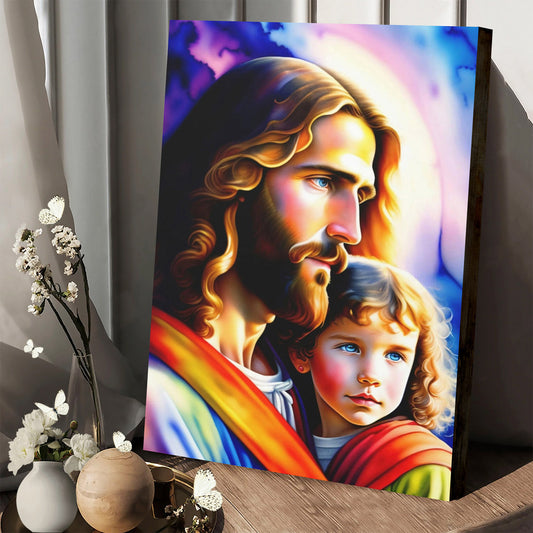Jesus With Child Canvas Jesus Portrait Jesus Wall Art - Jesus Canvas Pictures - Christian Wall Art