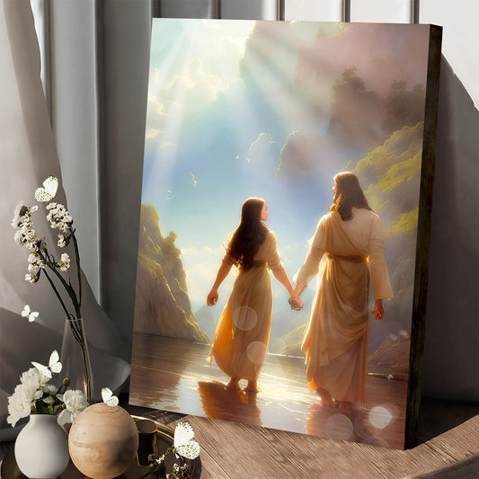 Premium Poster Ai Generated Art Woman Walking On The Water - Jesus Canvas Pictures - Christian Wall Art
