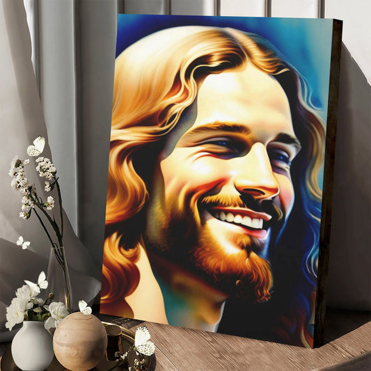 Smiling Jesus On Canvas Jesus Portrait Jesus Wall Art - Jesus Canvas Pictures - Christian Wall Art