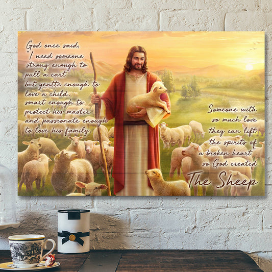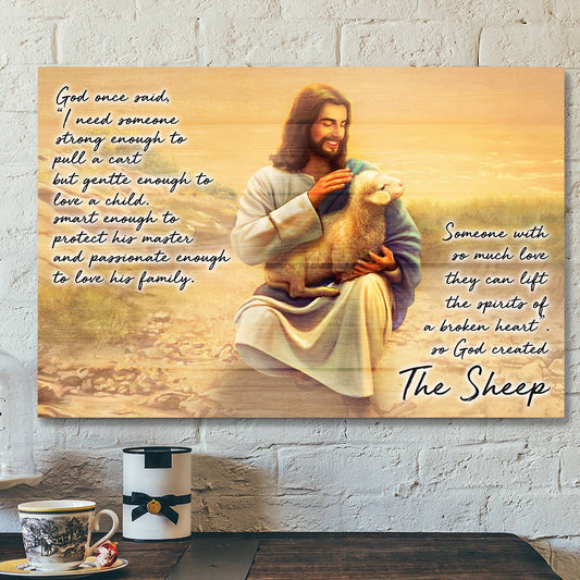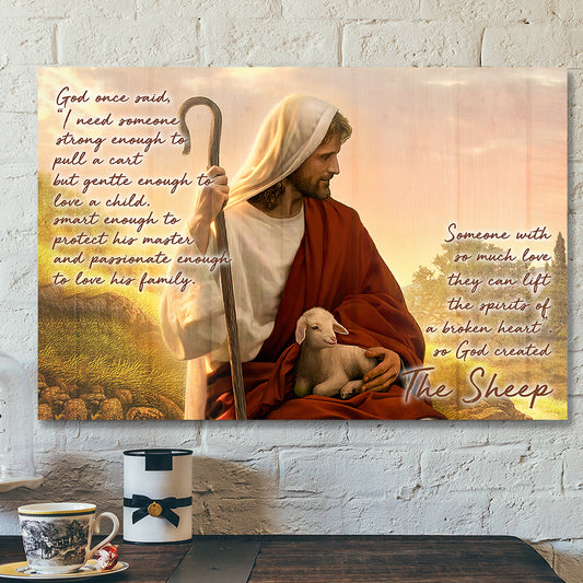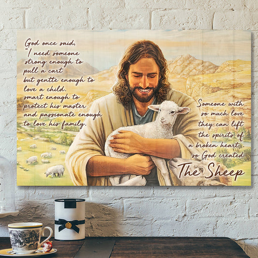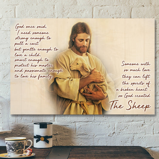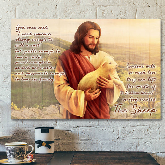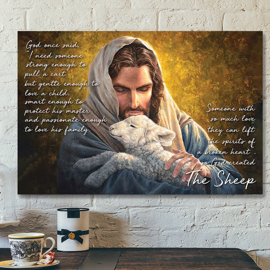 God Hugs Sheep - God On Said 2 - Bible Verse Canvas Wall Art - Scripture Canvas - Ciaocustom