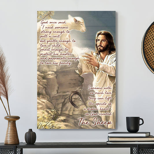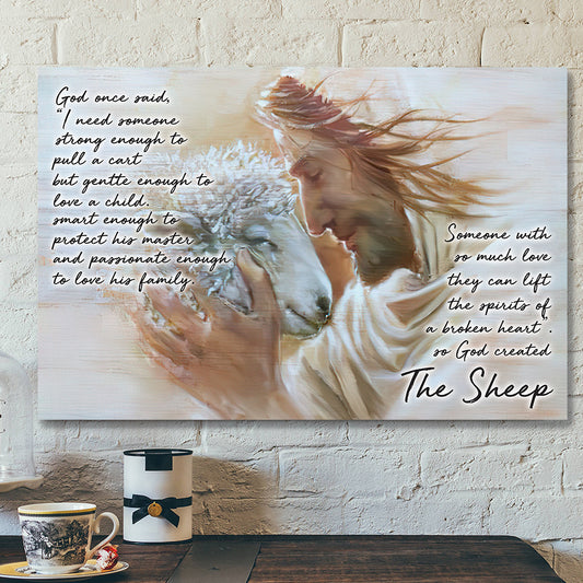 God Hugs Sheep - God On Said 1 - Bible Verse Canvas Wall Art - Scripture Canvas - Ciaocustom