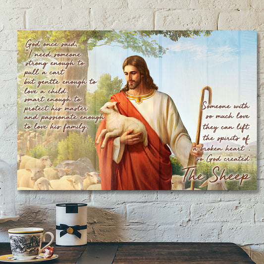 God Hugs Sheep - God On Said 10 - Bible Verse Canvas Wall Art - Scripture Canvas - Ciaocustom