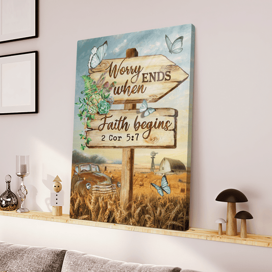 Worry Ends When Faith Begins, Old Car, Butterfly, Countryside, God Canvas, Christian Wall Art - Ciaocustom