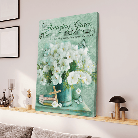 Amazing Grace, Flower, Cross, Book, Butterfly, God Canvas, Christian Wall Art - Ciaocustom