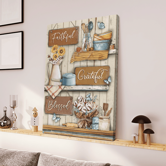 Faithful Grateful Blessed, Flower, Butterfly, God Canvas, Christian Wall Art - Ciaocustom