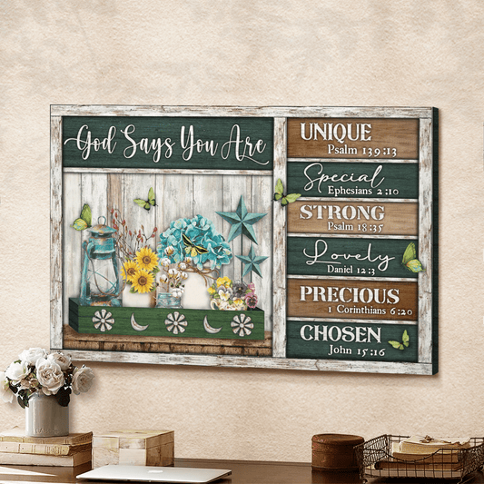 God Says You Are Unique Special Strong Lovely Precious Chosen, Flower, Butterfly, God Canvas, Christian Wall Art - Ciaocustom