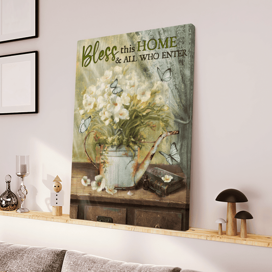 Bless This Home And All Who Enter, Flower, Butterfly, God Canvas, Christian Wall Art - Ciaocustom