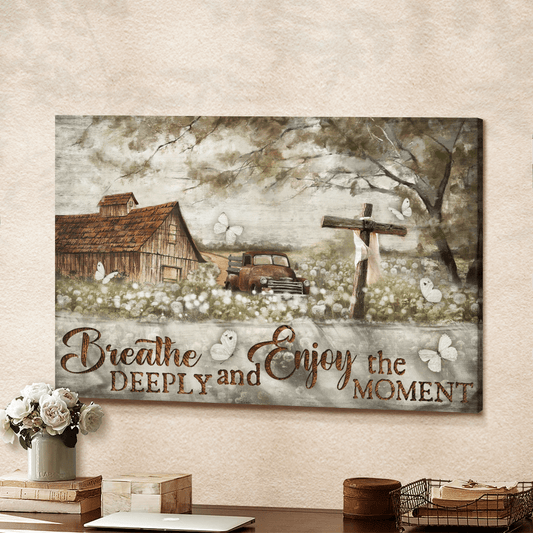 Breathe Deeply And Enjoy The Moment, Contryside, Old Car, Cross, Butterfly, God Canvas, Christian Wall Art - Ciaocustom