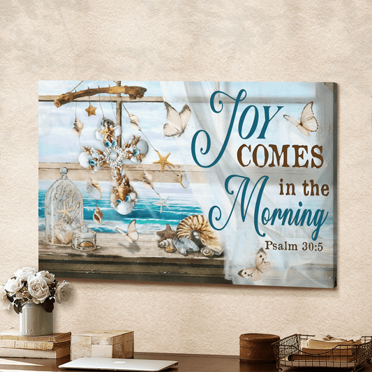 Joy Comes In The Morning, Beach, Seashell Cross, Butterfly, God Canvas, Christian Wall Art - Ciaocustom
