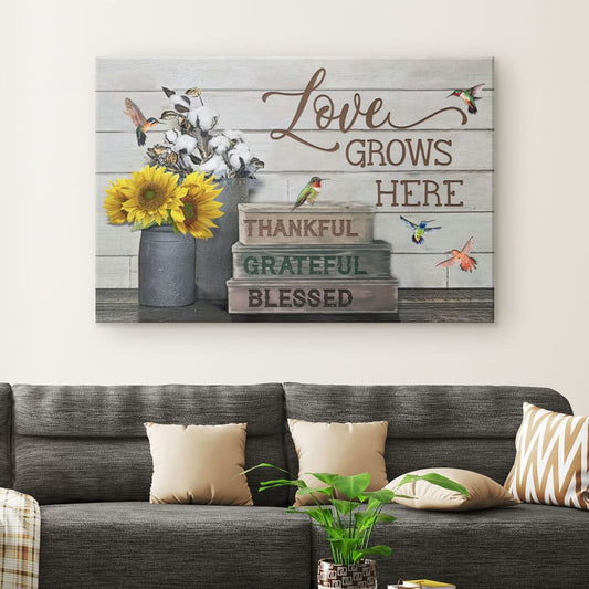 Love Grows Here Thankful Grateful Blessed Canvas Wall Art - Christian Canvas - Faith Canvas