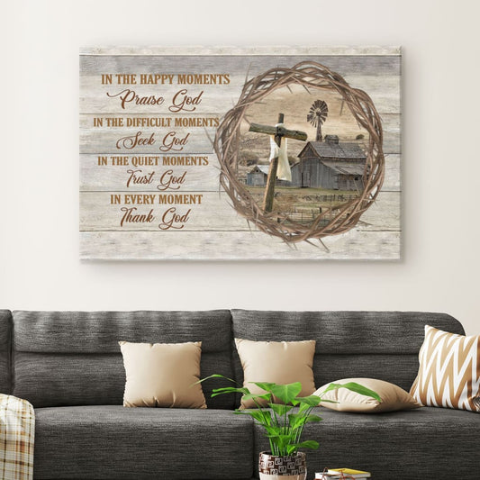 In Happy Moments Praise God Farmhouse Style Canvas Wall Art - Christian Canvas - Faith Canvas