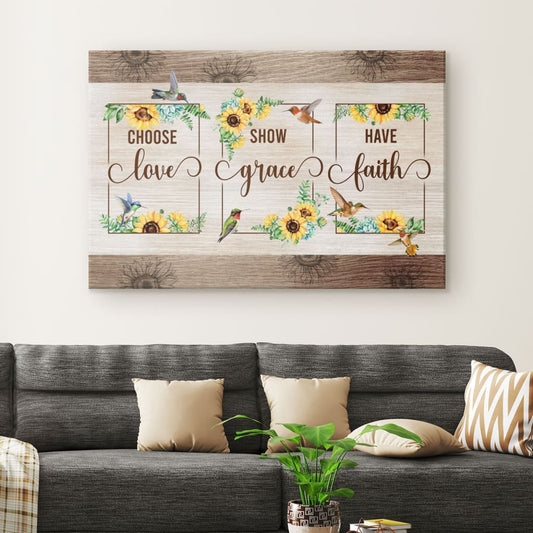 Choose Love Show Grace Have Faith Hummingbird Sunflower Canvas Wall Art - Christian Canvas - Faith Canvas