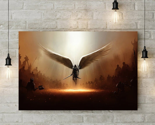 Wings Of God Warrior Canvas Wall Art - Christian Poster - Religious Wall Decor