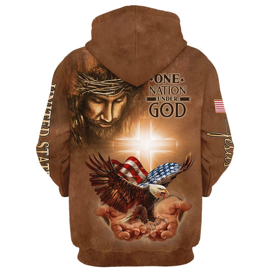 Christian Jesus And Eagle One Nation Under God 3D Hoodies Jesus Hoodie Men & Women Christian Hoodie 3D Printed Hoodie