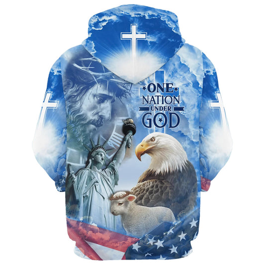 Eagle Jesus America And Lamb One Nation Under God Hoodies Jesus Hoodie Men & Women Christian Hoodie 3D Printed Hoodie