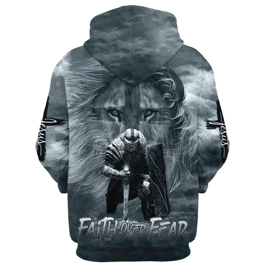 Faith Over Fear Hoodie Lion and Warriors Hoodies Men & Women Christian Hoodie 3D Printed Hoodie