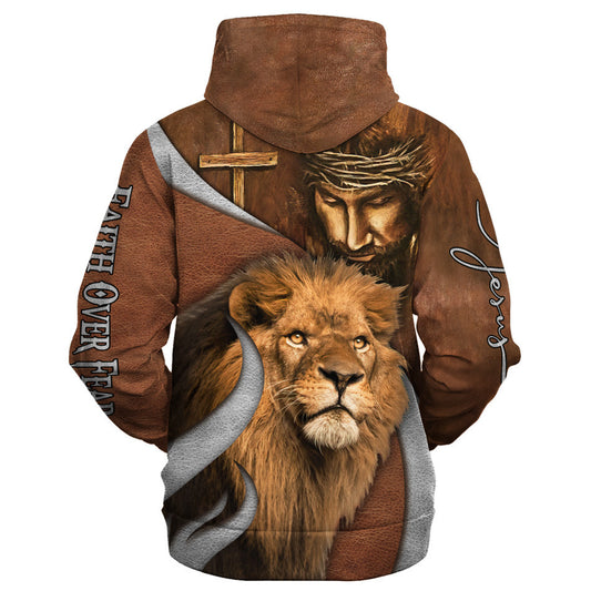 Faith Over Fear Lion And God Hoodies Men & Women Christian Hoodie 3D Printed Hoodie