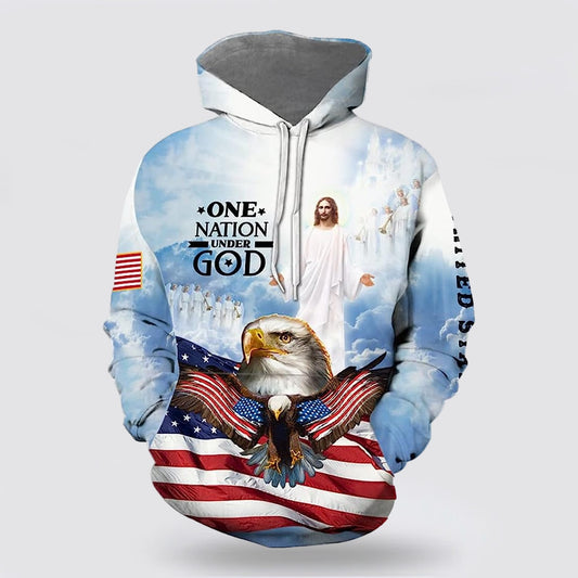 Jesus One Nation Under God 3d Hoodies For Women Men - Christian Apparel Hoodies