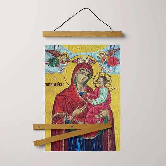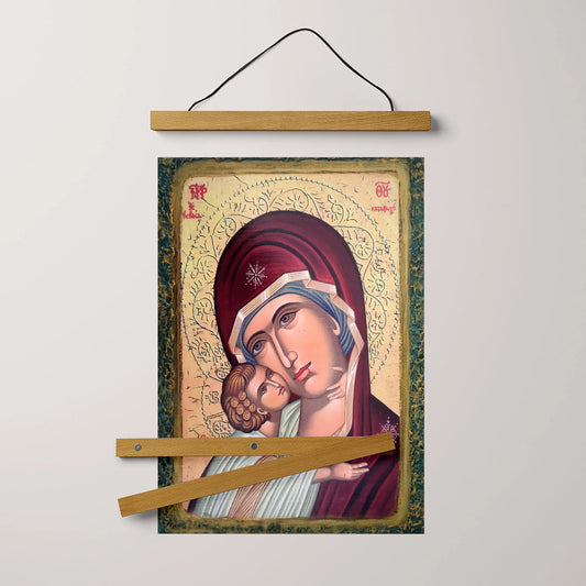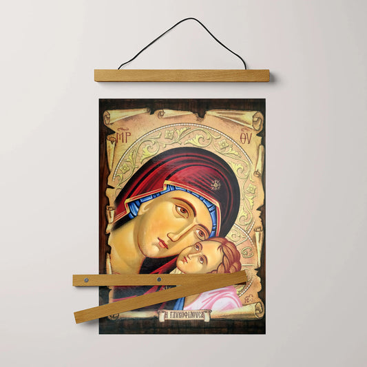 Virgin Mary Glikofilousa Religious Hanging Canvas Wall Art - Catholic Hanging Canvas Wall Art - Religious Gift - Christian Wall Art Decor