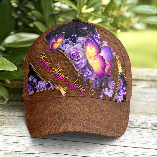 • Faith Hope Love Magical Butterfly Purple Roses Leather Style Baseball Cap